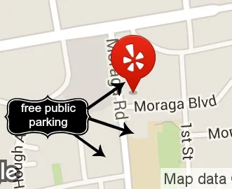What could be more appetizing that the fact that in addition to our small lot, (meters enforced until 7:00 PM) there is free street parking as well as metered spaces along Moraga Road (free after 6:00 pm) all around. A public lot is just a short walk away. Please refrain from parking in the Lafayette Optometry lot at the corner of Moraga Rd & Moraga Blvd.